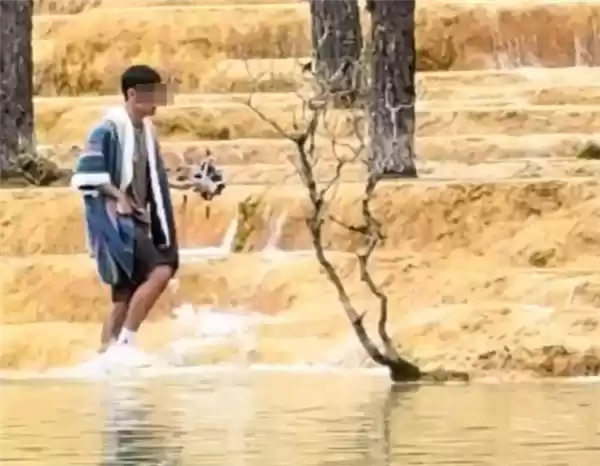 据了解,当时该游客因急于寻回坠入池中的无人机,无视工作人员的多次劝阻,坚持进入池内。最终虽然成功将无人机捡起,但这一行为已经违反了景区关于保护钙华池的明确规定。