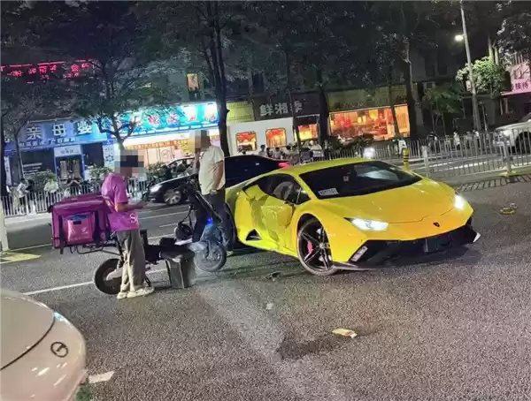 一起特殊的交通事故近日引发热议,事故的主角竟是骑电瓶车的跑腿小哥和一辆崭新的兰博基尼Huracán跑车。