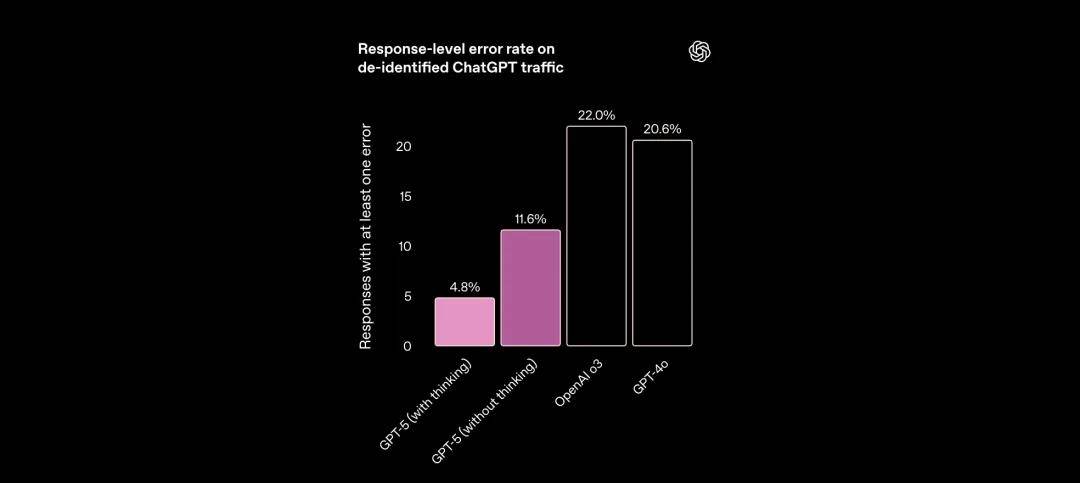 “ 而我的直观感受是:出现幻觉的概率确实下降了,我用了大概三天的时间,提了一些哲学、编程和人工智能相关的问题,在一些生僻概念的理解上考察模型的输出,还是有非常不错的效果,例如:GPT-5 不会把我自创的英文缩写( 一些技术架构里的缩略语 )错误拆分了,比如 ‘ AIGUI ’ 这个概念不会如 GPT-4o 般拆分成 ‘ AI GUI ’ 了。”
