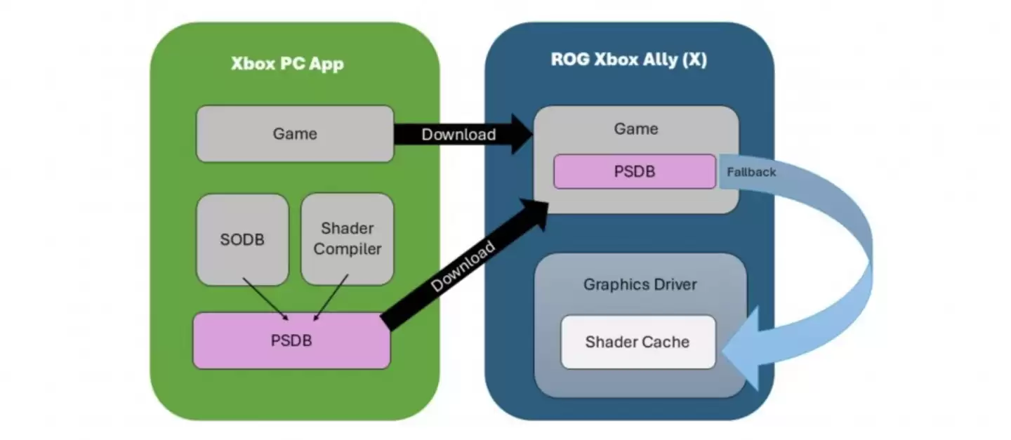 当玩家通过掌机内置的Xbox PC应用下载游戏时,系统会自动交付对应的PSDB数据。这使得游戏在首次启动时就能直接读取缓存,无需在本地重新编译。如果检测到驱动程序更新,缓存也会同步刷新,从而避免再次出现加载延迟。