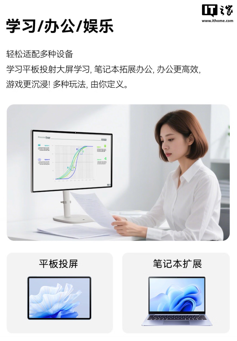 其他方面,该机搭载蓝牙 5.2 技术,内置安卓 14 系统,配备 1 个“全功能”USB-C 接口,官方称该机支持“笔记本扩展”,因此预计该机作为支持 USB-C“一线连”显示器使用。