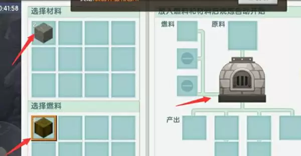 5、打开石炉,放入岩石块和果木即可合成黑炭。