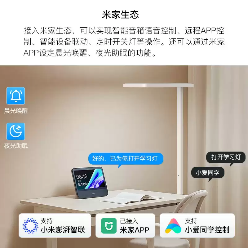 支持小米澎湃智联,已接入米家 APP,支持小爱同学控制。