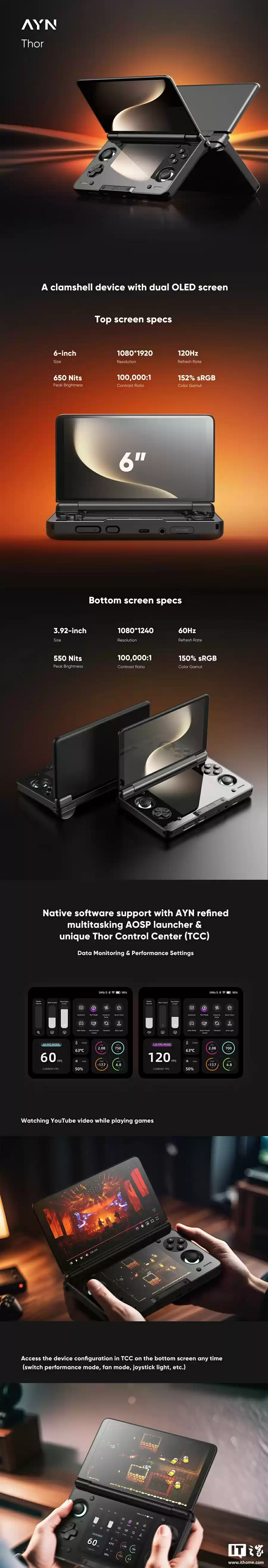 8 月 25 日消息,AYN 今天在其官网更新了 Thor 双屏掌机的详细参数。