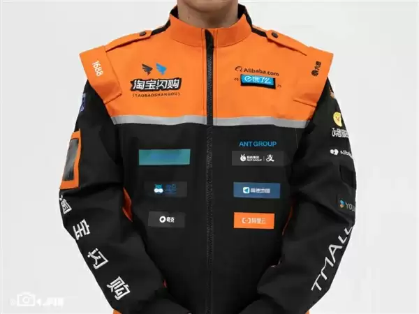 第一眼看过去,利落的剪裁、酷炫的配色、满身的“赞助商”Logo,我已经有点分不清,这是淘宝闪购外卖小哥还是迈凯伦车队了。