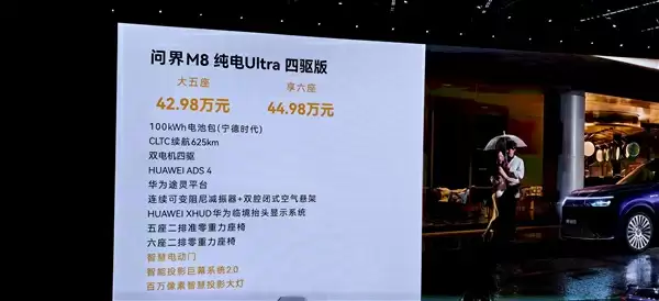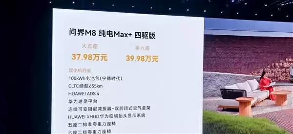 问界M8 EV纯电版上市:35.98万起,续航超800km,纯电与增程同价