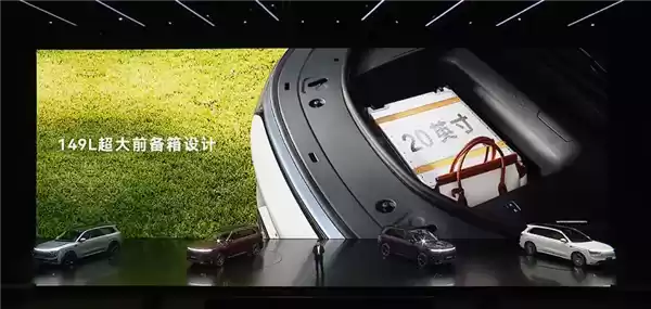 相较于增程版,纯电版由于不需要发动机,因此可以设计出一个前备舱,M8 EV就拥有这样一款,容积达到149升,且支持多种电动开闭功能。