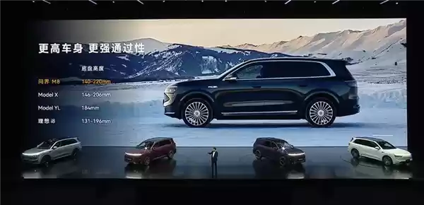 M8EV同样配备猫头鹰转向,极致转弯半径仅5.75米,让这款大SUV也能拥有非常的灵活性,且全系标配双腔空悬,能调节软硬和高低,最大涉水深度可到900mm。