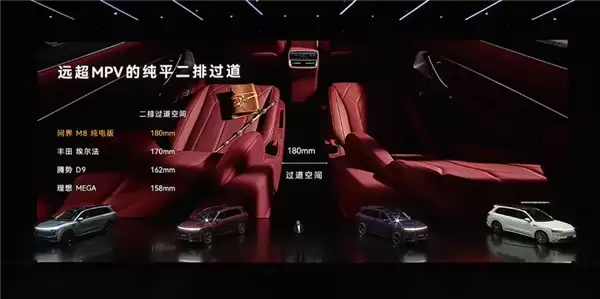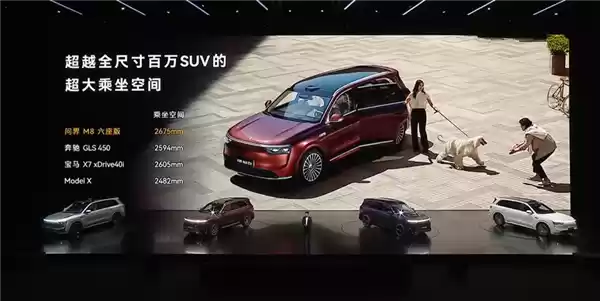M8纯电版定位于全尺寸纯电SUV,其长宽高为5190*1999*1795mm,轴距3105mm,且采用了传统SUV的造型,方正高大,车内空间充足,且经过了充分设计,风阻系数仅0.255。