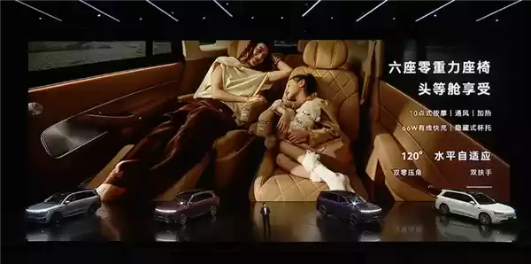 车内部分,该车三个版本均提供五座和六座两种布局,全系标配舒云座椅,其中六座版还提供二排零重力座椅,进一步提高舒适性。