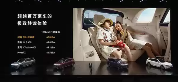 M8 EV基于全新高压纯电动力架构打造,配备华为途灵平台、全新华为DriveONE高压七合一电驱和华为巨鲸电池,提供前双叉臂、后五连杆独立悬架,还标配双腔空气和可变阻尼悬架,支持晕车舒缓2.0。