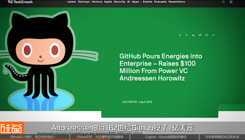 在2010年代,也就是Marc Andreessen口中“软件正在吃掉世界”的那段时间,Github成了软件公司追捧的工具,Andreessen的a16z也给Github投了1亿美元,赌的就是Github会成为下一个微软或者甲骨文。