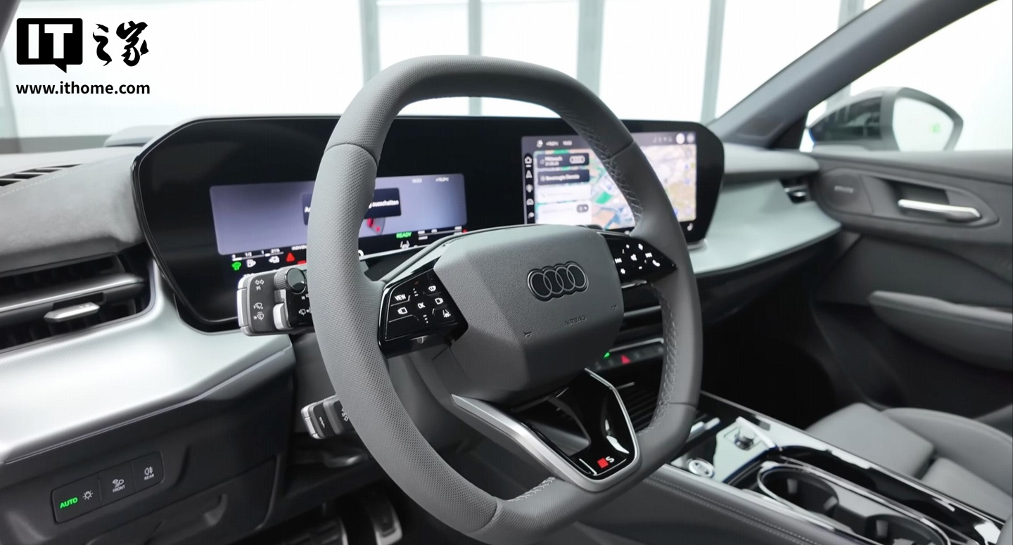 内饰方面,新一代奥迪 Q3 Sportback 延续了新一代奥迪 Q3 的布局,采用了全新环抱式风格。车内配备了由 11.9 英寸数字仪表盘和 12.8 英寸 MMI 触控屏组成的联体屏,并搭载了 Android Automotive OS 车机系统。全新一体式转向柱控制杆通过拨动、按动和旋钮方式进行功能控制,左侧为灯光和雨刮控制,右侧为换挡控制。此外,新车还提供了 15 瓦手机无线充电、USB-C 充电接口等配置,并可选装 SONOS 音响系统。