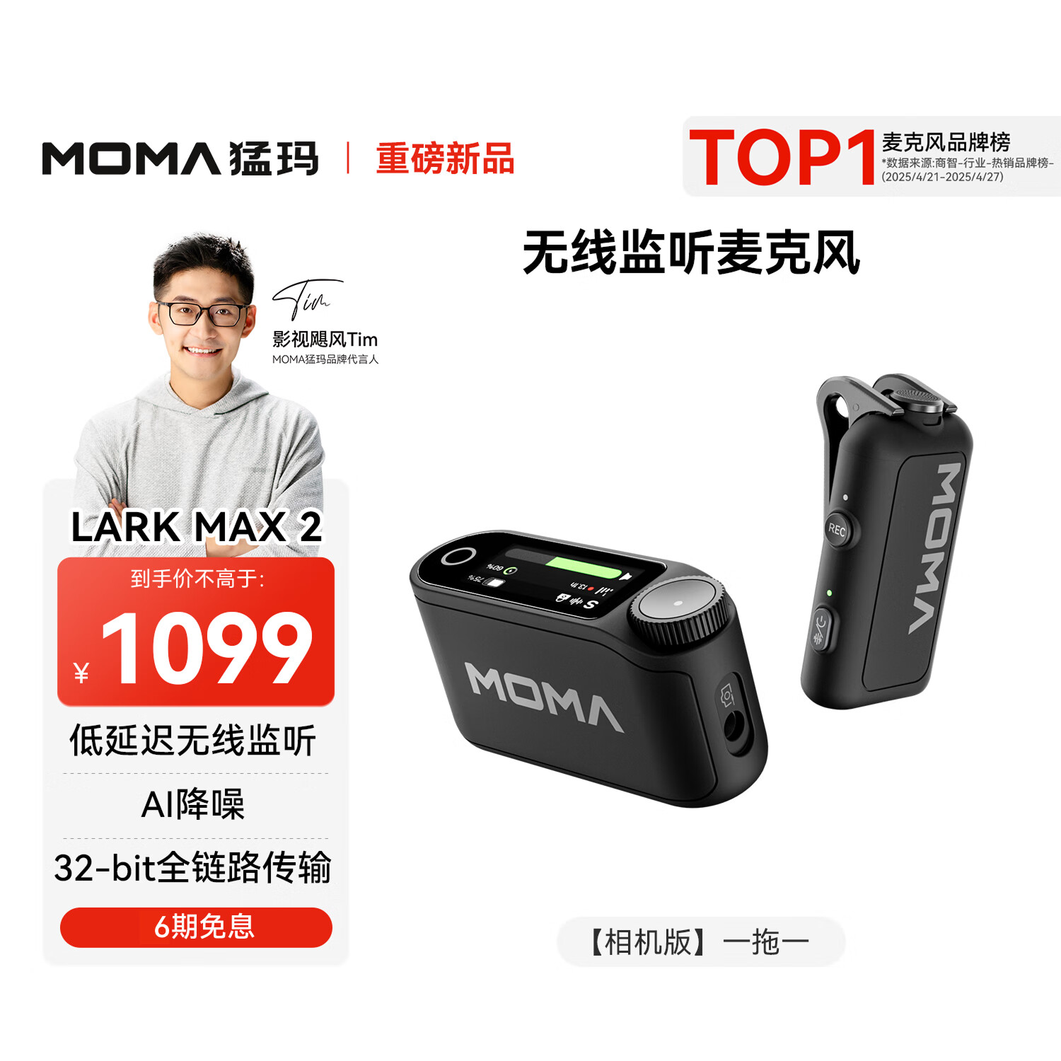 8 月 26 日消息,在目前正在进行的猛玛 8 周年・品牌战略暨秋季新品发布会中,猛玛 LARK MAX 2 无线领夹麦克风正式发布,该机主打“低延迟无线监听、AI 降噪、32-bit 全链路传输”,首发价 964 元起,整理价格信息如下: