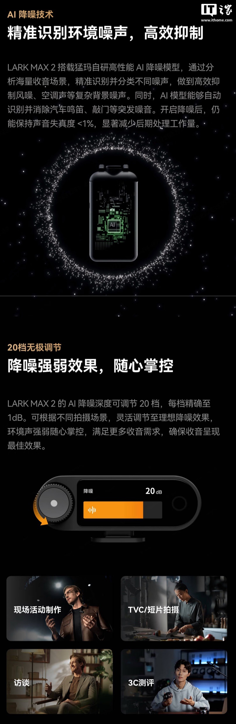 猛玛LARK MAX 2无线麦克风发布:首发964元起,支持20级AI降噪与32-bit全链路传输