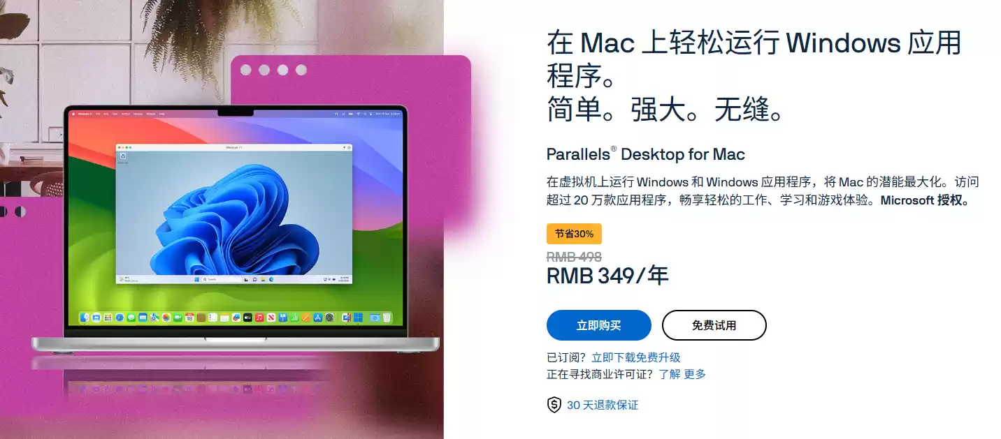 请注意,Parallels Desktop为付费软件,提供标准版、专业版、商业版和企业版等多个版本选择,用户可通过Parallels官方网站或授权销售渠道进行购买或升级操作。