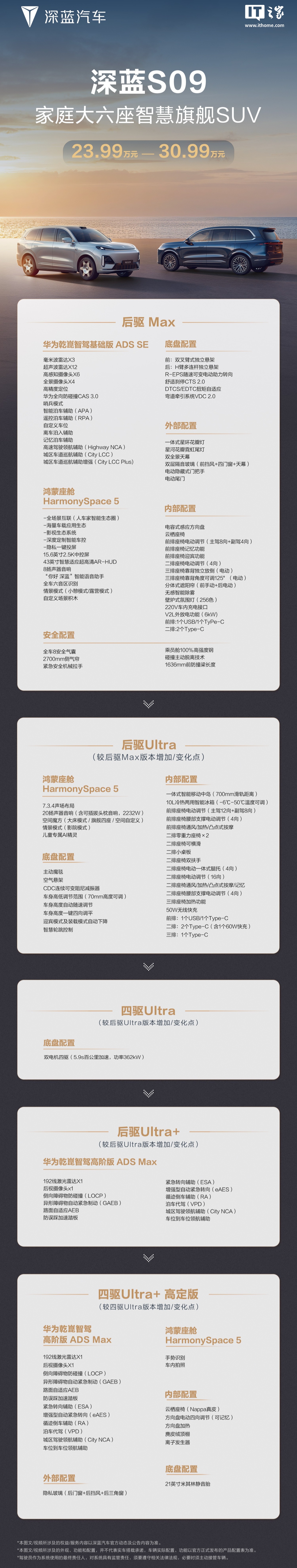 深蓝汽车官方今日宣布,深蓝 S09 汽车将首批搭载华为乾崑智驾 ADS 4,宣称“驾驭更从容,出行更心安”。