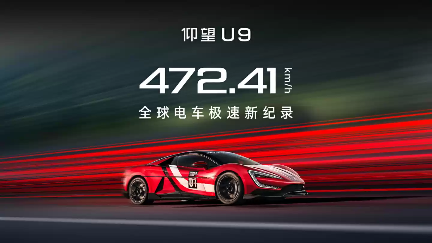 8 月 26 日消息,比亚迪仰望汽车今日宣布,仰望 U9 工程测试车打破全球电车极速纪录,最高时速达到了 472.41km/h。