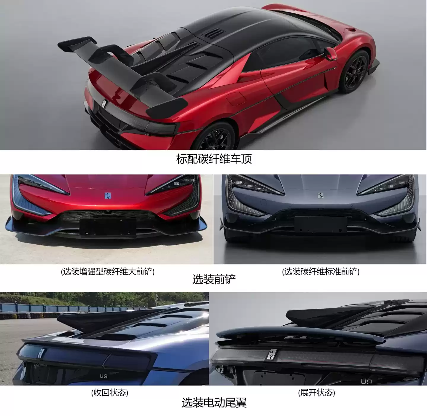 此外,仰望 U9 赛道版还沿袭了现款仰望 U9 的空气动力学设计,并搭载已量产销售的增强型碳纤维前铲选装件。