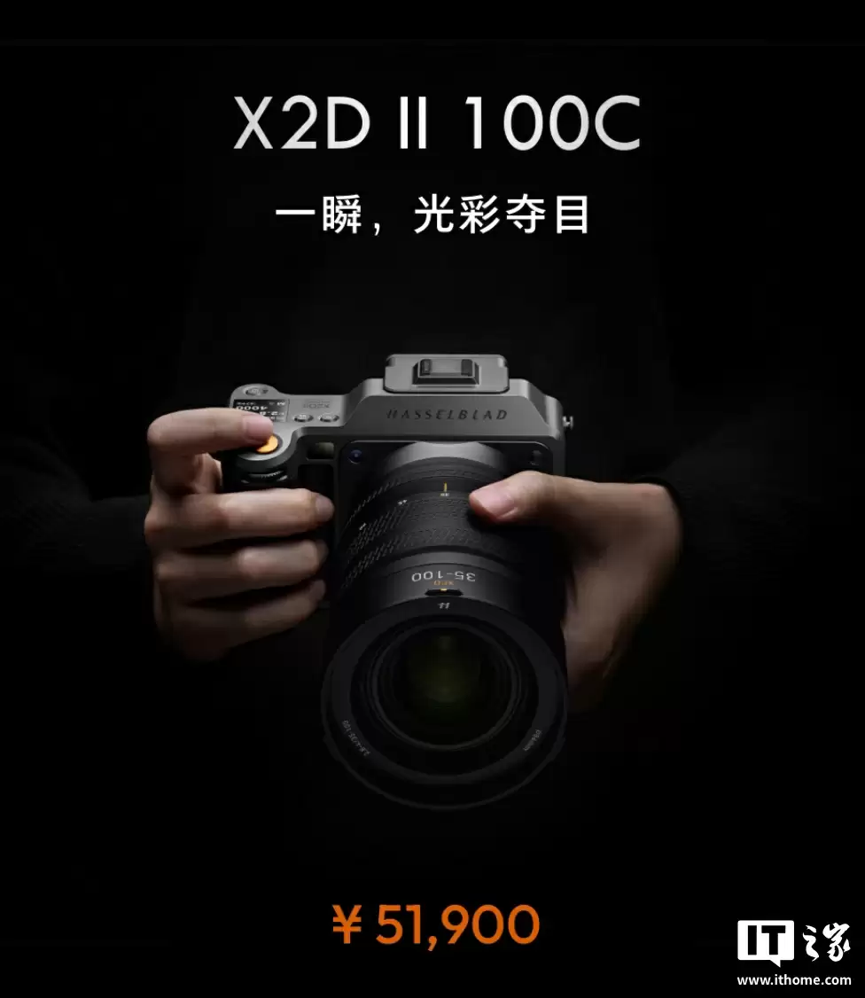8 月 26 日消息,哈苏现已推出全新中画幅相机 X2D II 100C,该机主打 PDAF / LiDAR 连续自动对焦、HNCS HDR 高动态范围影调、5 轴 10 级机身防抖,国行定价为 51900 元。
