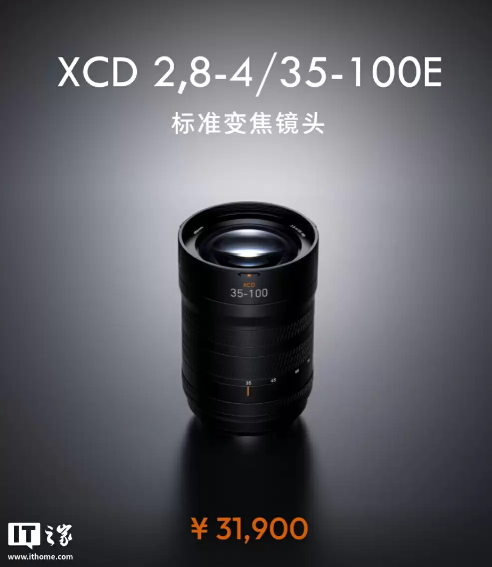 此外,官方还推出了 XCD 2,8-4 / 35-100E 镜头(35-100mm F/2.8-4),使用 STM 对焦马达,提供 1/4000s 快门速度(镜间快门),结构方面采用 13 组 16 片设计,配有 3 片非球面镜片和 5 片超低色散镜片,定价为 31900 元。