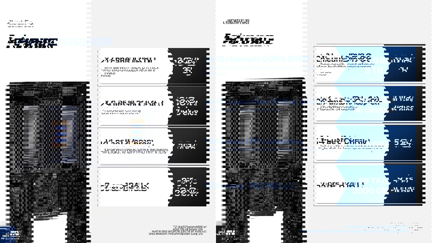 "Clearwater Forest" 处理器与上代至强 6 能效核 "Sierra Forest" 插槽兼容,至高支持 12 通道的 DDR5 RDIMM 内存,频率支持从上代的 6400MT/s 增至 8000MT/s,没有提及对 MRDIMM 的支持。