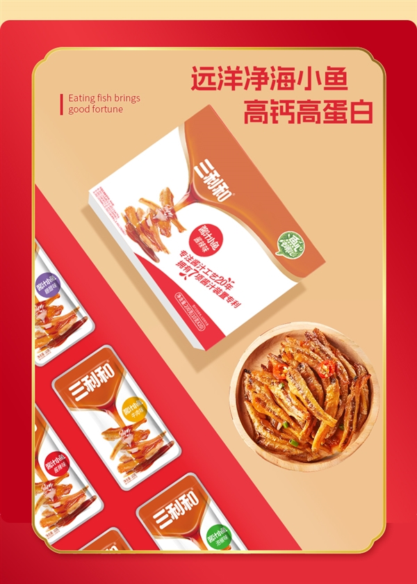 三利和酱汁小鱼仔50包仅14.9元!无骨无刺更放心