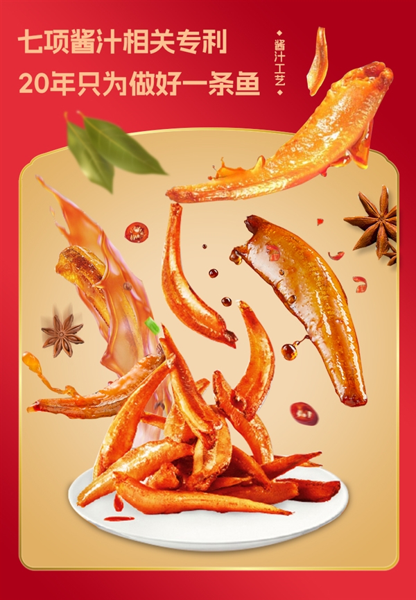 甄选深海优质鳀鱼,有汁有味,首创酱汁工艺。微压秘卤,七项酱汁,反复卤煮,寸寸入味。