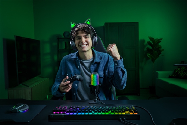 麦克风与佩戴体验同样贴心。可伸缩式Razer HyperClear超宽频带麦克风支持灵晰降噪,能过滤环境杂音,同时捕捉更宽频率范围的声音,让语音沟通清晰自然。