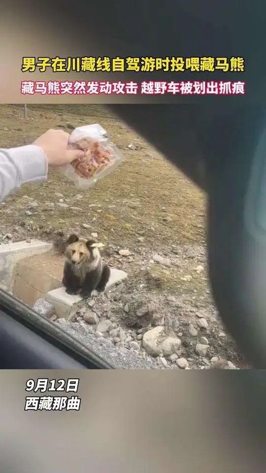 然而,我们在网上竟然经常能看到有人在西藏公路上投喂藏马熊!