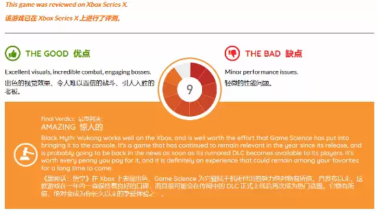 时隔一年,国产大作《黑神话:悟空》终于登陆了Xbox主机,Gamingbolt也于近日发布了Xbox Series X版游戏的测评报告,给出了9分的好成绩,并评价其“令人满意”。