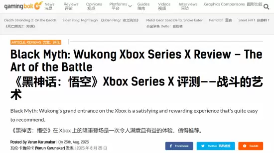 海外媒体盛赞《黑神话:悟空》XSX版:9分高评,体验流畅值得入手!