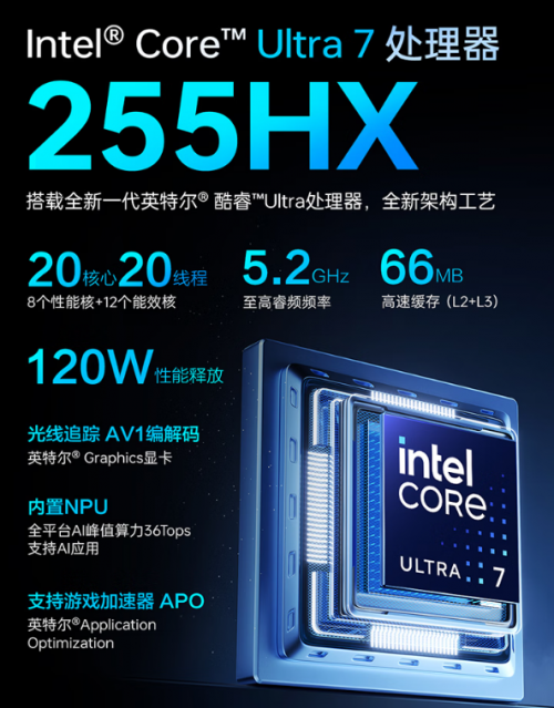 雷神 ZERO 16 Pro 的核心竞争力来自于其搭载的英特尔酷睿 Ultra 7 255HX 处理器。这款基于先进 Arrow Lake 架构的处理器,采用 8 个性能核与 12 个能效核的 20 核 20 线程设计,性能核睿频高达 5.2GHz,配合 66MB 大容量缓存,极大提升了数据读取与处理速度。再加上英特尔 Thread Director 技术,能智能调度任务,让性能核与能效核各司其职,充分发挥多任务处理能力,为《英雄联盟》的流畅运行奠定坚实基础。