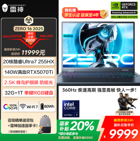 雷神 ZERO 16 Pro 凭借强劲性能、出色屏幕和创新技术,重新定义了高端游戏本的综合体验。目前官方参考价 10999 元,国补 + 活动后到手价 9999 元,适合对屏幕刷新率、游戏帧率有极高要求的电竞玩家,是驰骋《英雄联盟》峡谷的绝佳 “神装”。