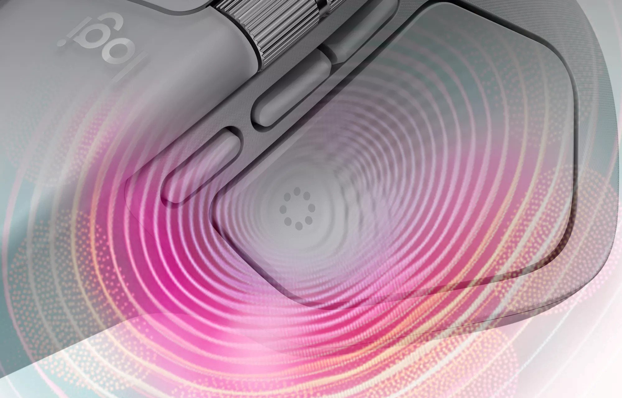 最大亮点是新增的“Haptic Sense”触觉反馈板,位于拇指区域,内置振动马达可针对特定操作、快捷键或系统通知进行反馈。用户可通过 Logi Options + 应用调节震动强度,实现个性化交互体验。