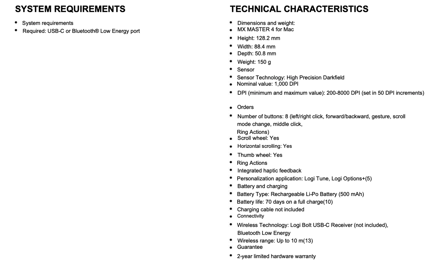 在硬件规格上,新款搭载 Darkfield 高精度传感器,默认 1000 DPI,可在 200-8000 DPI 范围内以 50 DPI 为步进进行调节。整机配备八枚可编程按键,其中包括新增的手势功能键与可点击的操作环。连接方式支持 Logi Bolt 接收器及蓝牙,并可同时连接多台设备,提供 PC、Mac 及商务版选择。