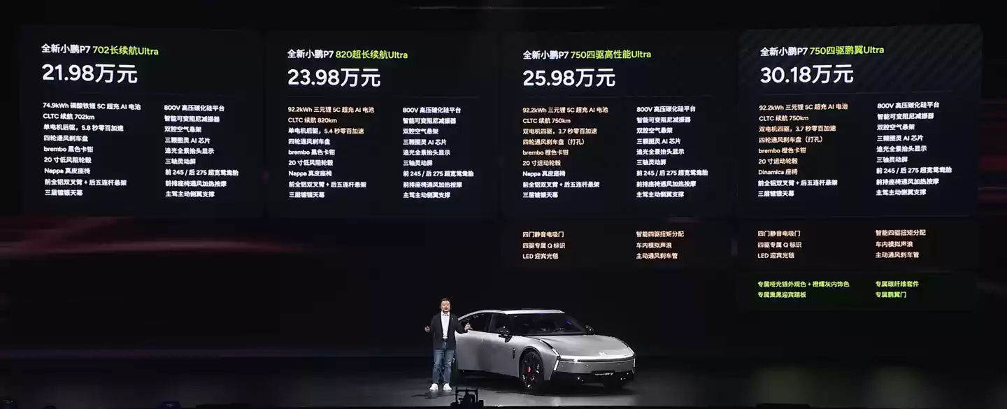 小鹏P7全新上市:标配800V架构+双腔空悬,21.98万起售