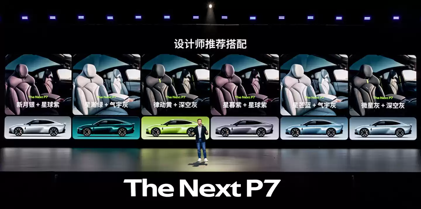 全新小鹏 P7 采用顶级汽车品牌同款车漆 —— 巴斯夫鹦鹉漆,提供星瀚绿、星暮紫、星芒蓝、律动黄、新月银、微星灰六款外观,以及深空灰、气宇灰、星球紫三款内饰色。