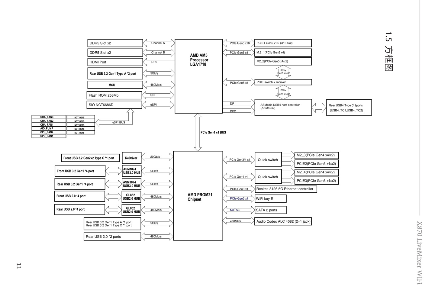 针对X870芯片组的扩展特性,该主板采用了灵活的PCIe通道分配方案: