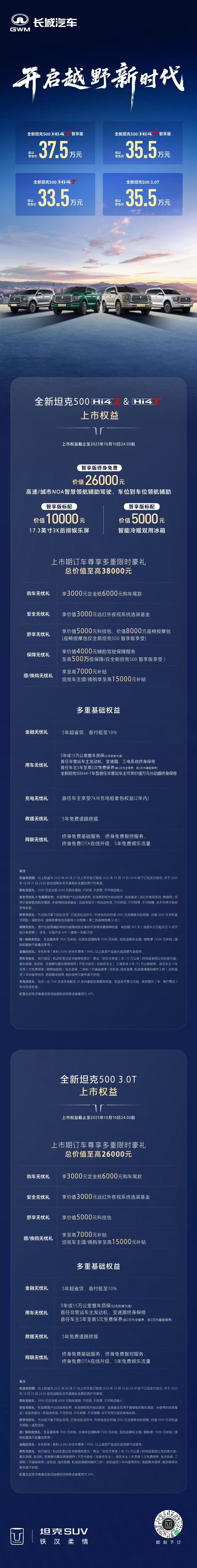 坦克500正式上市:33.5万元起,豪华越野新标杆