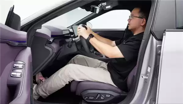 而且主驾的坐姿非常低,发布会说是电车里仅次于Taycan。反正我已经很久没在电车上试过这么接近半躺着去开车了。