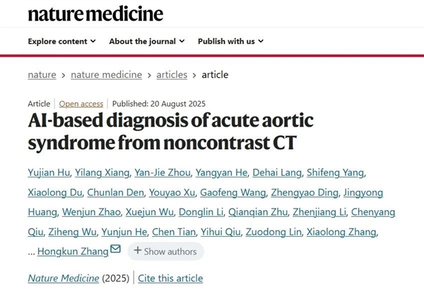 浙大一院与达摩院等机构组建了联合研究团队,首创“平扫CT+AI”识别急性主动脉综合征,帮助医生早期确诊。
