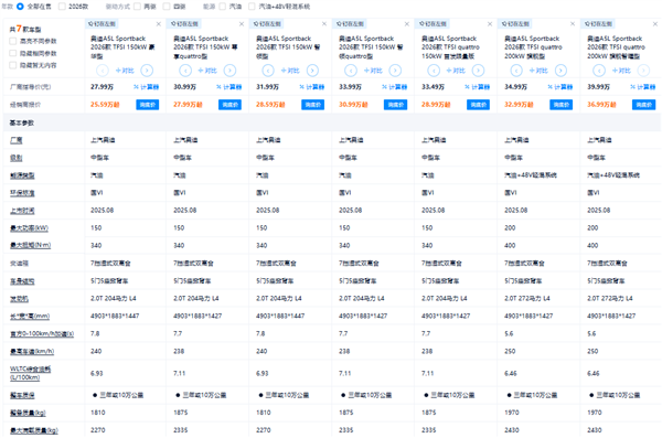 至于版本之间的配置差异,奥迪还没透露,但是第三方平台已经有配置表了。