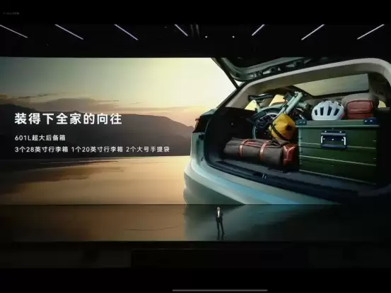 其次在空间方面,尚界H5有着4780mm的车长和2840mm的轴距,得房率非常高,后排头部和腿部空间都超过1米,并且座椅靠背角度可调整到32°,可以预见的是后排坐起来会很舒服,而且尚界H5的储物空间也很丰富,后备箱容积601L,纯电版前备箱容积124L还支持Knock Knock双击开启,大空间+大后备箱真的很契合家用需求。