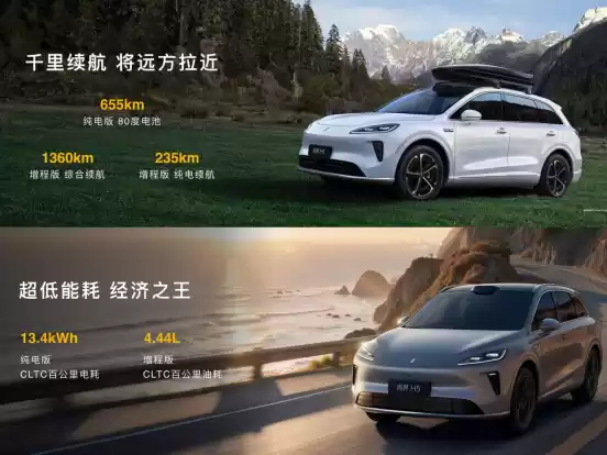而在动力上,尚界H5不仅提供纯电增程双动力,而且续航和能耗在同级中也比较占优。纯电版配备80度电池,CLTC续航里程最高可达655km,CLTC百公里电耗仅为13.4度。而增程版CLTC纯电续航里程235km,综合续航里程可达1360km,CLTC百公里油耗仅为4.44L,跟插混车油耗差不多,看来上汽这个增程还真有两下子。