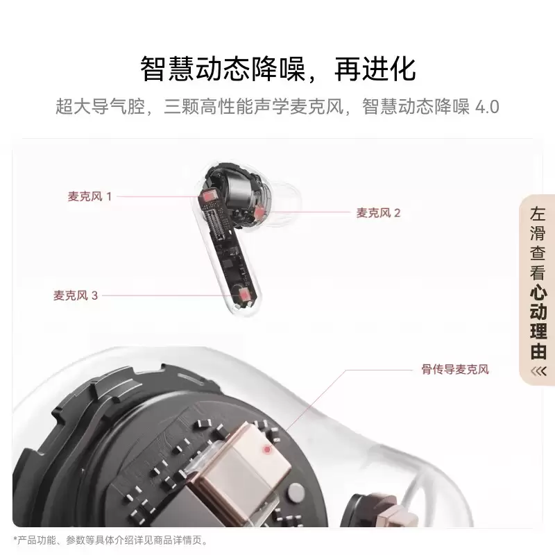 在通话体验上,FreeBuds 7i 除搭载三颗麦克风外,新增骨传导麦克风,精准拾音并降低通话噪音,全链路升级让通话更清晰。其还支持 90dB 噪声下消除环境背景音,身处商场、街道等嘈杂场景,也能清晰通话。