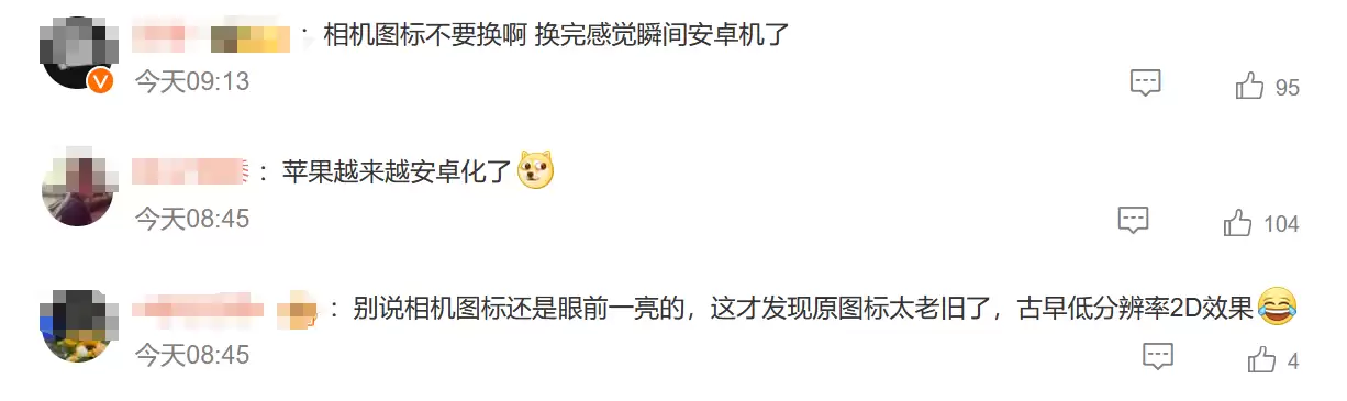 对于这波新图标,网友评价两极分化。有人认为iOS越来越像安卓,而安卓反而在向iOS靠拢;更有果粉调侃"iOS 26让我突然觉得iOS 18真香"。当然也有用户对新设计表示认可,认为这种变革带来了新鲜感,也许未来还能与AI功能深度融合。