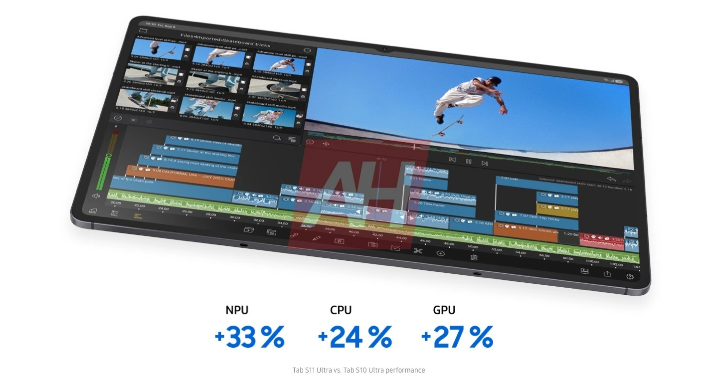 在核心硬件方面,援引博文介绍,Galaxy Tab S11 Ultra 沿用 S10 Ultra 的高端路线,搭载联发科天玑 9400+ 旗舰芯片,与前代相比,CPU 性能提升 24%,GPU 提升 27%,NPU 提升 33%。
