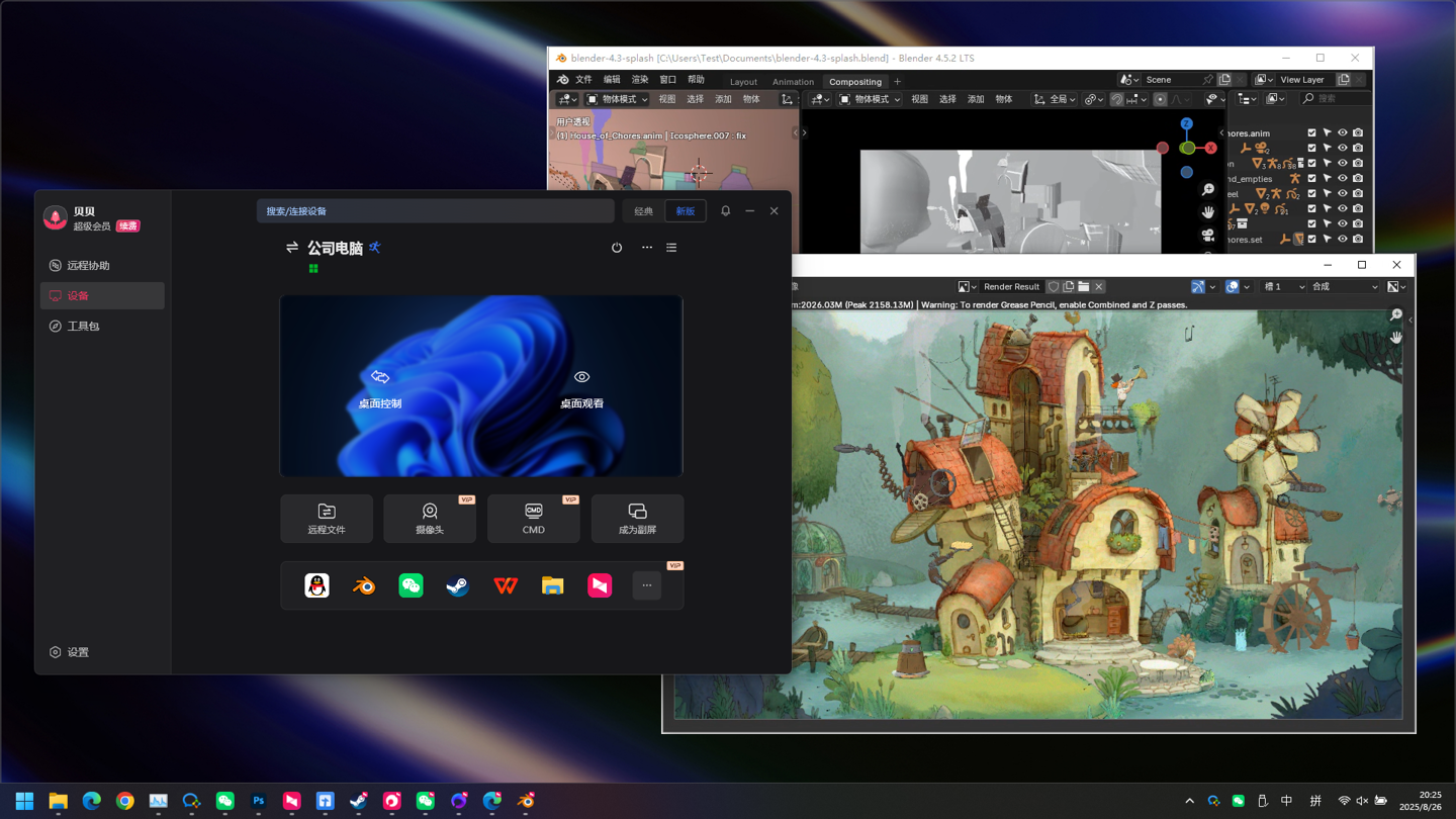 具体来看,该功能已覆盖多类实用场景:比如,你可以同时登录个人微信和工作微信;轻薄本可“本机”运行远程高性能主机上的 3D 渲染、视频剪辑软件。未来,“超级桌面”还将全面支持 macOS 等更多系统场景,可在 Mac 上运行 3DMax 做渲染、用 SolidWorks 绘制零件等。