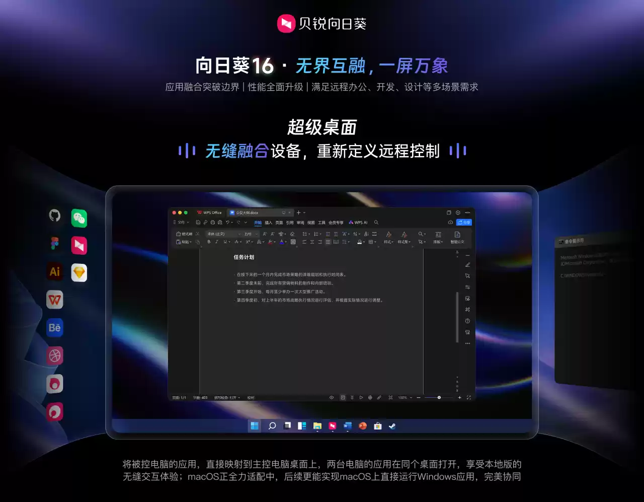 近日,国民级远程控制品牌贝锐向日葵迎来重大版本更新 —— 全新向日葵 16 正式发布。作为远程控制领域的技术先行者,此次升级不仅在远控性能上实现“快、稳、清”三重突破,更创新推出“超级桌面”模式,实现应用融合突破设备边界,同时新增“小 K ”“成为副屏”等实用功能,覆盖远程办公、IT 运维、设计创作、游戏娱乐等全场景需求。